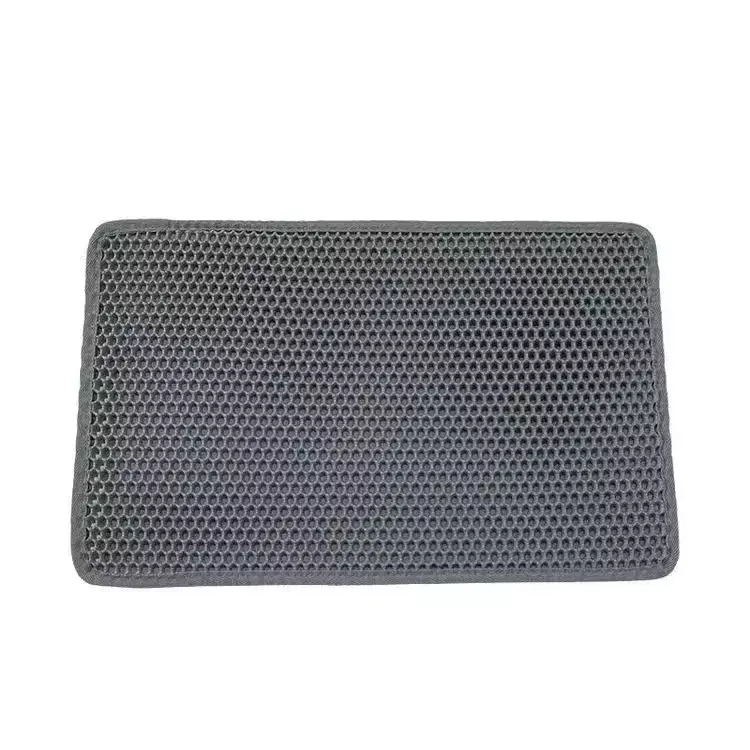 A camada superior, com estrutura de favo de mel, prende a areia das patinhas do gato, enquanto a inferior impermeável evita vazamentos e facilita a limpeza.